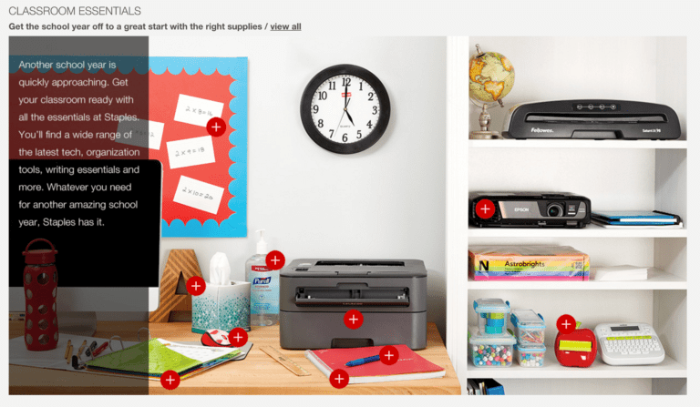 Вот отличный пример маркетинга из Staples. Для продвижения своих «предметов первой необходимости в классе» компания Staples вышла за рамки демонстрации своих товаров в качестве отдельных продуктов. Вместо этого они сфотографировали различные предметы вместе со школьными реквизитами, чтобы покупатели могли увидеть, как эти продукты можно использовать в школьной обстановке.