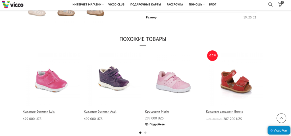 Например: Vicco.uz указывают информацию о возврате и обмене, о доставке, о наличии гарантии и т.д.